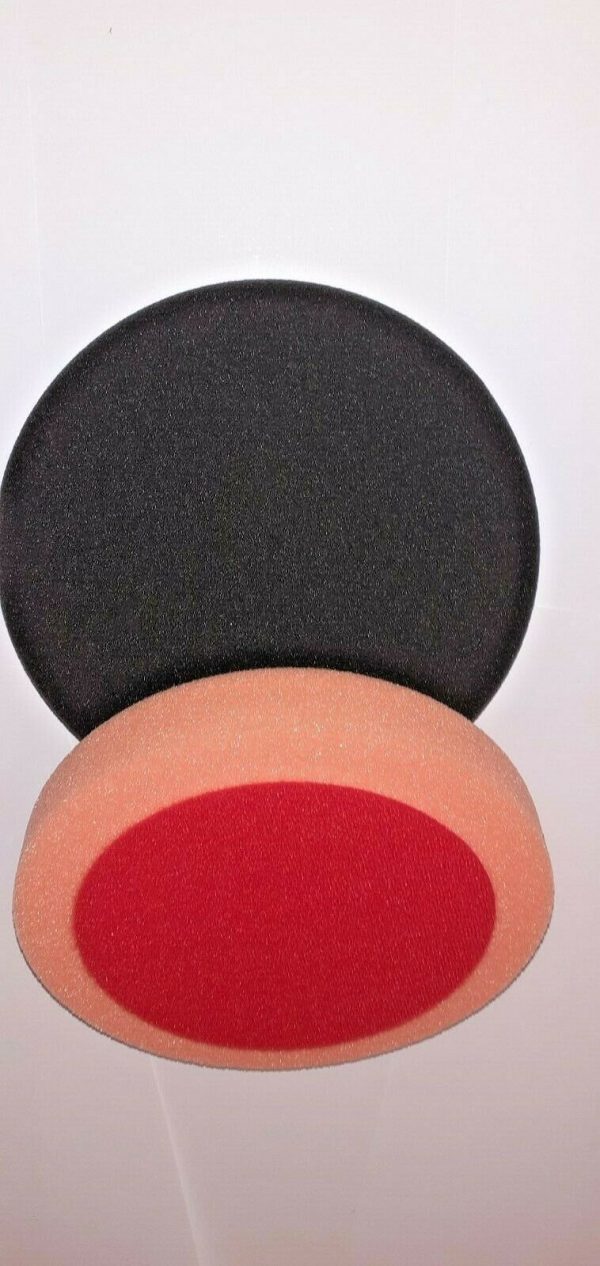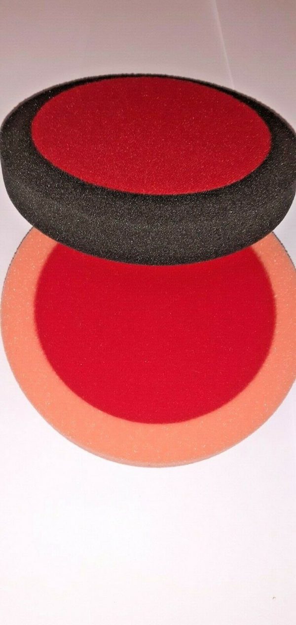 2 X COMPOUND POLISHING BUFFING HEADS 1X BLACK, 1X ORANGE VELGRO 150MM X 30MM,