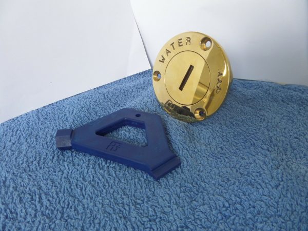 WATER DECK FILLER 38MM POLISHED BRASS WITH 3 WAY PLASTIC OPENER